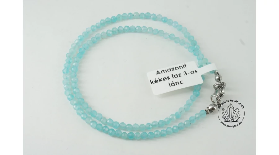 Amazonit kékes fazettált 3 mm-es golyós lánc