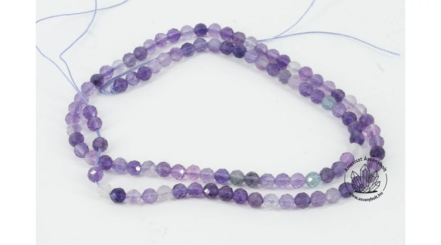 Fluorit lilás fazettált 4 mm-es golyós szál