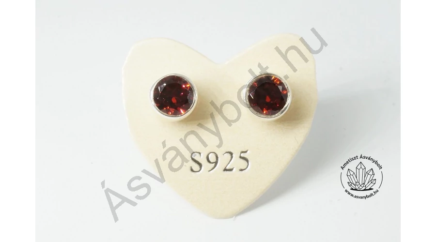 Gránát fazettált 5-ös drágakő füli button foglalatos ezüstben