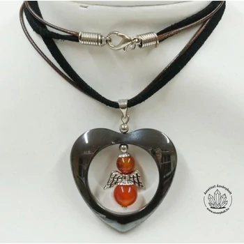 Hematit szívben karneol angyalka bőrláncon