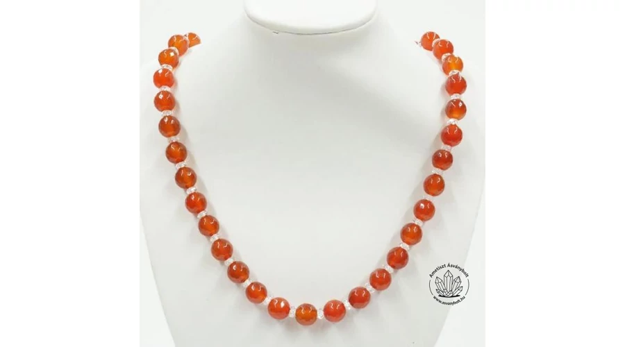 Karneol hegyikristály fazettált egyedi lánc
