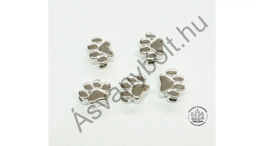 A termék réz öntvényből készült, felülete ródium bevonatos, fényes, minta nélküli. Magassága 7,5 mm, vastagsága 4,5 mm, furata 2,5 mm. Vásárolható minimális mennyiség 5 db, darabára 180 Ft, tehát az egységcsomag 900 Ft.