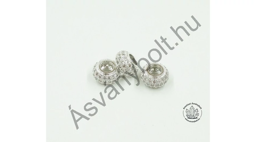 A mikrostrassz termékek népszerűsége erőteljes csillogásuk és változatos formájuk miatt van. Az igen pici strassz üvegekből ha sokat rögzítenek a fémfelületen, akkor erősebb lesz a csillogása a formának. Ez persze sok kézi munkát jelent, a felülete a réz alap fémnek antiallergén ( Ródium ) bevonatú. A domború háromsor köves gyűrű legnagyobb átmérője 8,6 mm, a furat 4 mm-es, a forma vastagsága 4,8 mm.