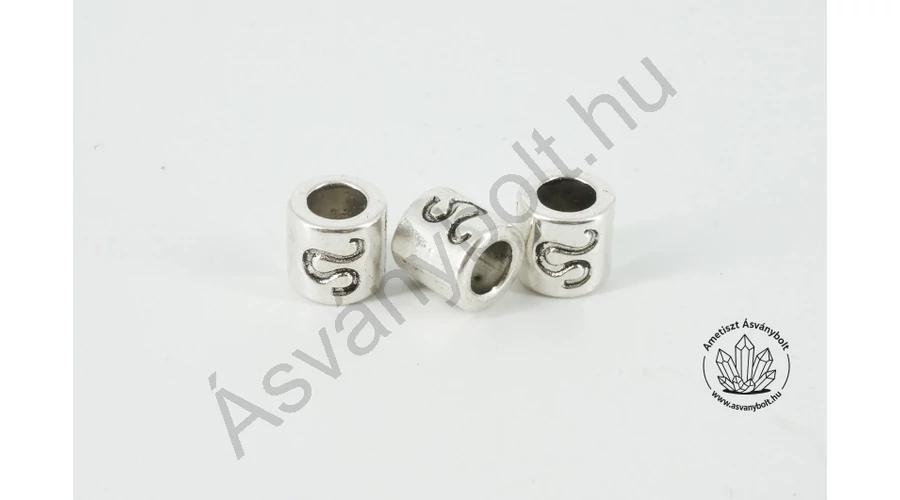 A horoszkóp gyűrűk cink öntvényből készültek. Hosszában kb. 7,5 mm, átmérője kb. 7,5 mm a lyuk átmérője kb. 4 mm. A terméket minimum 5 db-os csomagban lehet rendelni.
