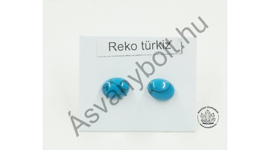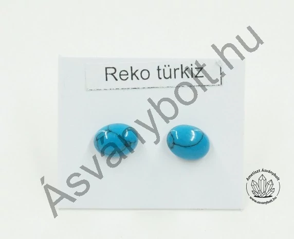 A Rekonstruált türkiz féldrágakő 6 x 8 mm-es felül domború, alul lapos, kék, néha rajzolatos köveit ragasztóval rögzítettük a nemesacél tüskéhez, amihez gumi rögzítő alkatrészt adunk a hátoldalra. A rendelt fülbevaló köveinek színárnyalata egy kicsit eltérhet a képen látottól.