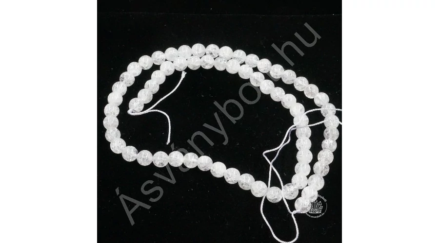 Az anyagban kevesebb repesztés van, emiatt tartósabb és átlátszóbb az anyaga. A termék kb. 38,5 cm hosszú, a felfűző zsinór mindkét végén csomó zárja le. A szálra fűzött golyók mérete 6 mm tehát a szálon legalább 63 - 65 golyó van felfűzve. A szálat így alkatrészek nélkül lehet vásárolni, a terméket saját munkával kell bármilyen ékszernek elkészíteni. Az anyag repedései viszonylag gyorsan feltöltődnek folyadékkal vagy testnedvekkel, ezáltal csillogó képességét elveszítheti. Hozzávaló alkatrészek az alkatrészek menüben találhatók.