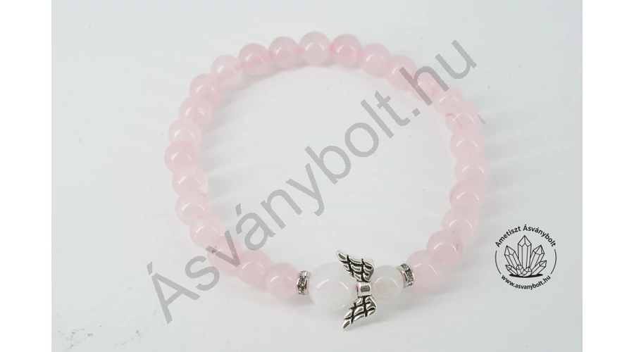 Rózsakvarc 6-os holdkő angyalos karkötő