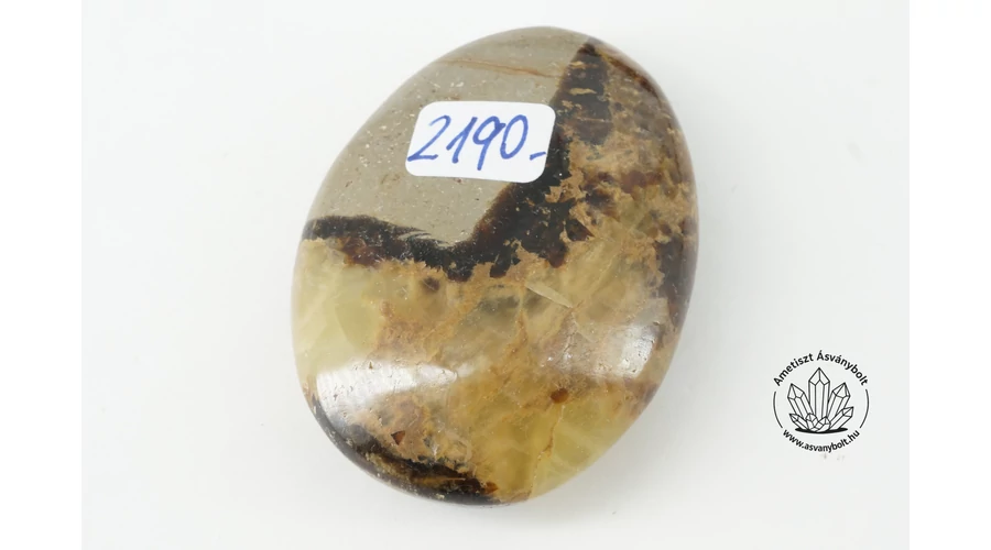 A Szeptária egy különleges ásvány képződés üledékes kőzetekben. A vas, mangán esetleg mész tartalmú iszap tömörödik, kiszárad, az évmilliók alatt kőzetté válik. Az iszapban található karbonát ásványok mint kalcit, sziderit esetleg dolomit a kiszáradt kőzetiszap repedéseit teljesen vagy részben kitölti és látványos szerkezetet hozhat létre. A Szeptária általában gumók formájában preparálódik ki a lazább üledékes kőzetekből, iszap kövekből majd széttörve vagy csiszolva látszik a szerkezete. Ha üreges, akkor a belsejét fogakhoz hasonló sárga Kalcit kristályok is boríthatják, mint a madagaszkári szeptáriákban vagy fekete Sziderit kristályok bársonyos felületet alkotva szintén onnan. A magyarországi üledékes kőzetekben szintén van szeptária pl, a Gánt környéki bauxit kőzetekben vagy az alsótelekesi mészköves és agyagos kőzetekben. A képen bemutatott szappankő kalcitos szeptária, ezért sárgás-barnás az iszapkő, ami nem fényezhető. Lelőhelye Madagaszkár. Mérete kb. 46 x 34 mm.