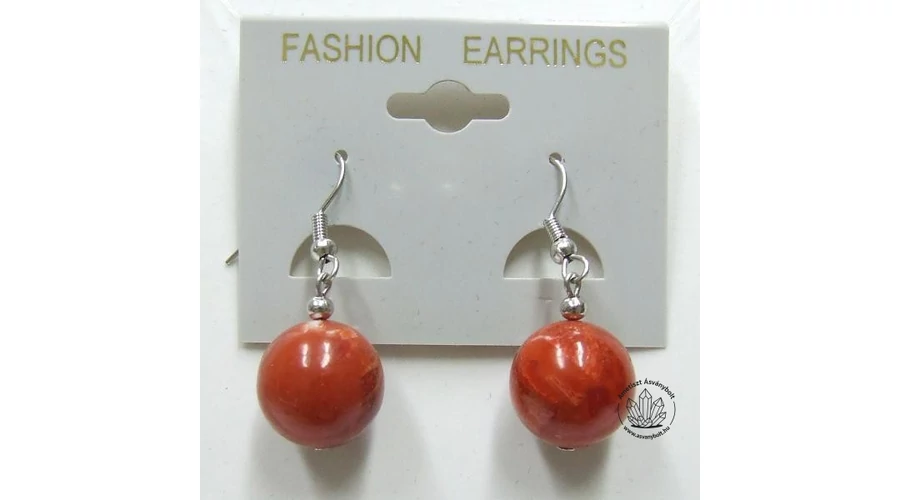 A füli fémalkatrészei antiallergén ( ródiumos ) bevonatúak, a füli akasztójára gumi harang szorítót szerelünk, az akasztó nemesacélból készült. A szivacskorall féldrágakő 12 mm-es csiszolt golyóit fűztük fel, az anyag teljes hosszában van fúrva és alkatrészezve. A fülbevalót fekete, szürke vagy fehér alaplapon küldjük attól függően, hogy melyik van készleten, ebben eltérhet a képen látottaktól.