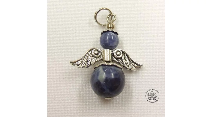 A Szodalit féldrágakő 10 mm-es és 6 mm-es golyóiból és egyéb antiallergén alkatrészekből készítettünk új angyalmedált a Vásárlóink kérésére.