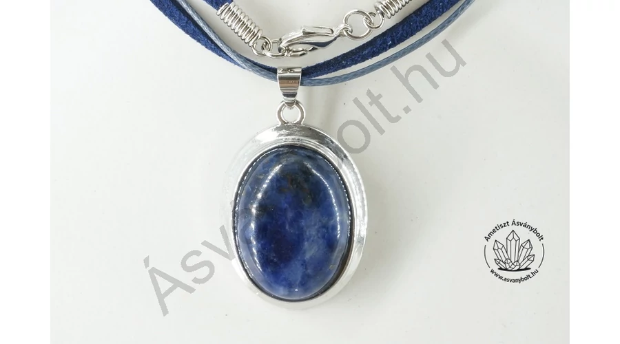 Szodalit foglalt medál bőrláncon