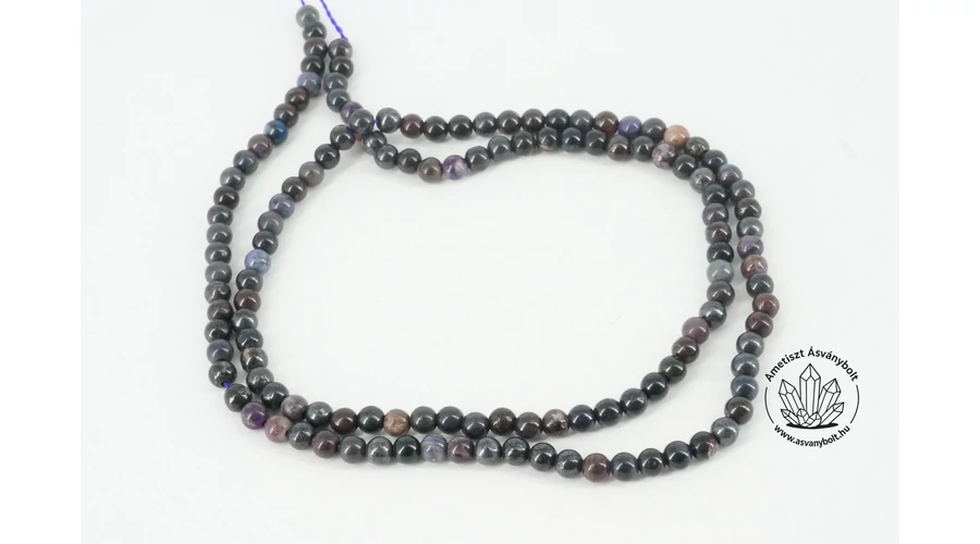 A Szugilit nagyon drága ásvány ékszeranyag, drágasága az egyetlen lelőhelye miatt van, Namíbiában bányásszák. Az anyagot kb. 3 mm-es golyókra csiszolták és kb. 39 cm-es szálban fűzték meg zsinórra.