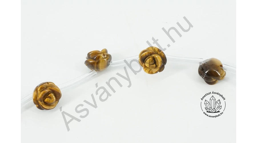 Különleges dekorációs darabok a nagy kézügyességet és odafigyelést igénylő fűzhető rózsák készítése. Az apró darabokat kézben tartva készítik csaknem teljesen azonos méretre és formára. Hátoldalon átfúrták a rózsákat, hogy felfűzhetők legyenek karkötőre, láncra vagy egyéb különleges ékszerhez. Az ásványok jó minőségűek, repedés mentesek. A képen látható módon is lehet felfűzni őket, de egyenként lehet rendelni a darabokat.
